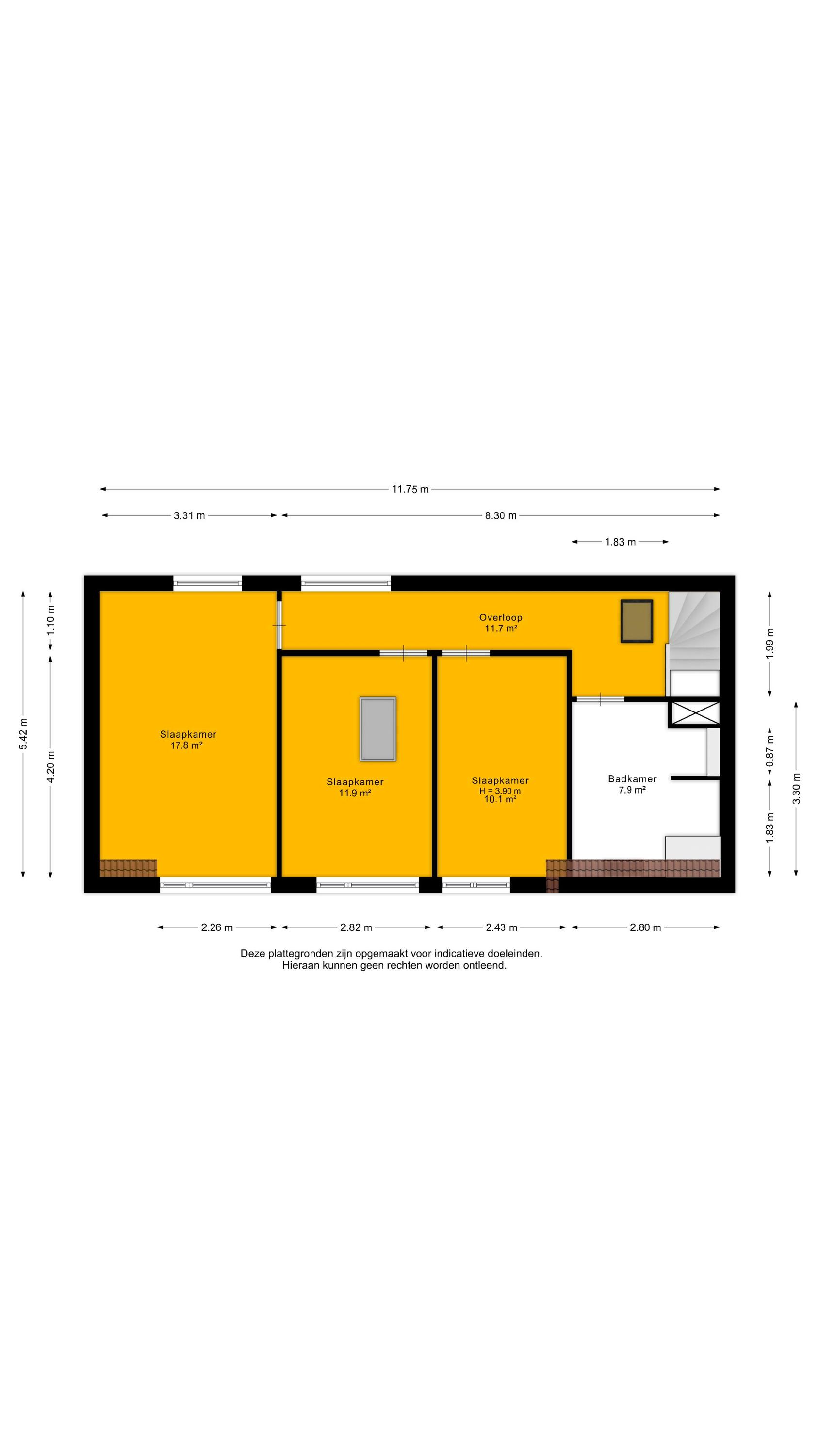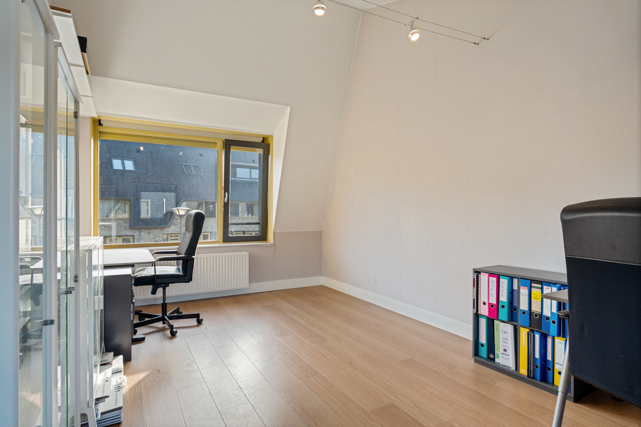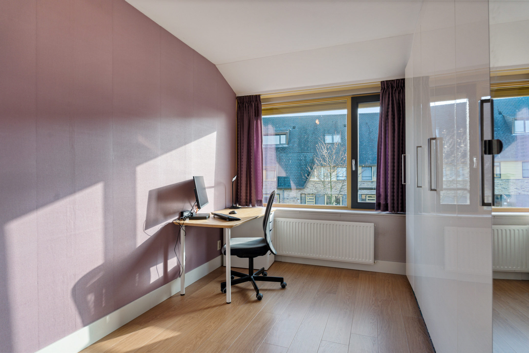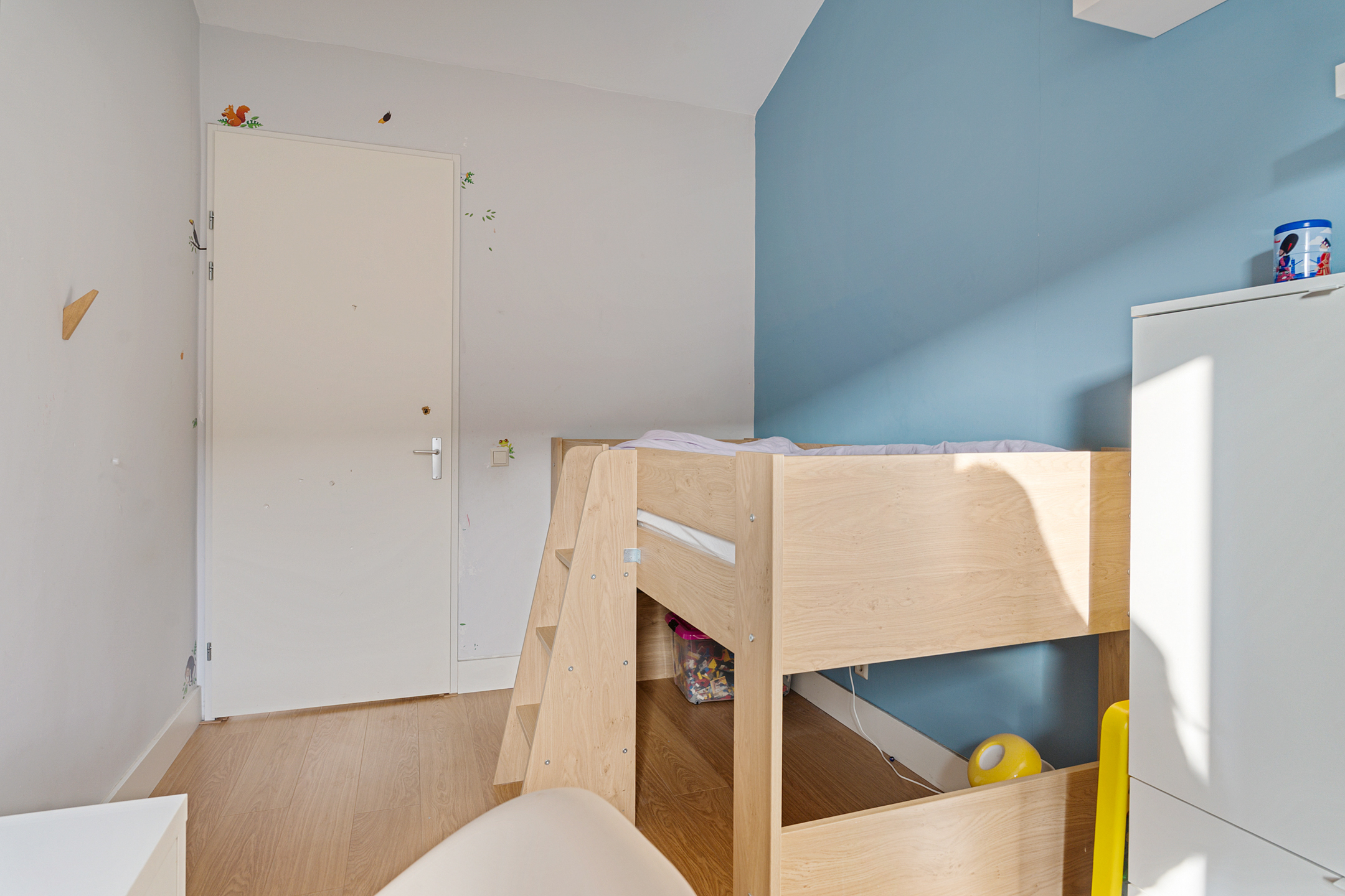 Op de eerste verdieping valt het licht meteen op dankzij het dakvenster op de overloop. De badkamer is compleet uitgerust met een ligbad, douche, toilet en wastafelmeubel met natuurlijke ventilatie via een dakraam. Er zijn drie slaapkamers op deze verdieping: twee aan de voorzijde met dakkapel, eentje met vliering, en een royale hoofdslaapkamer aan de achterzijde met extra raampartij en veel lichtinval.