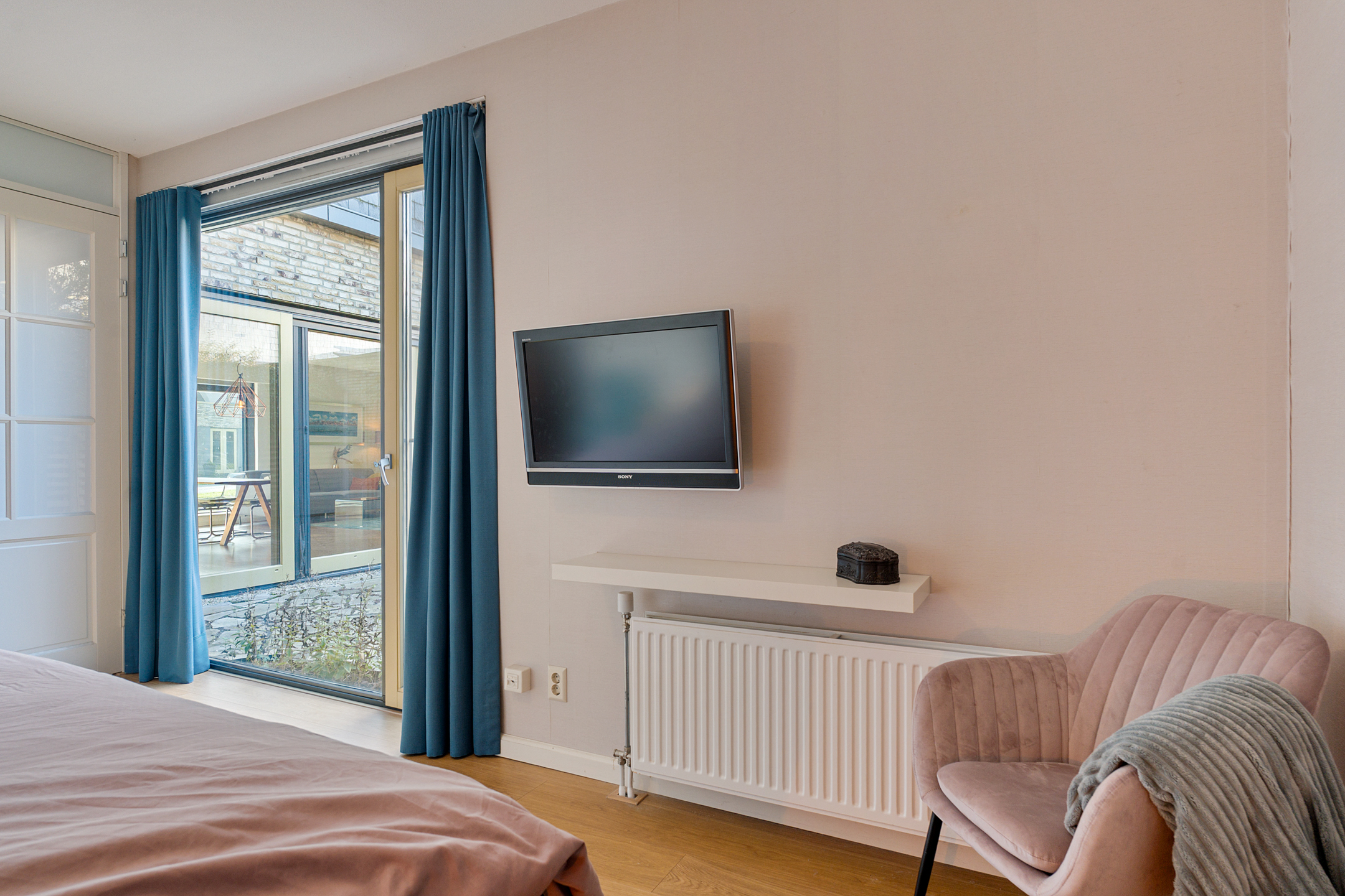 Op deze verdieping bevindt zich ook een ruime slaapkamer met toegang tot de patio.
